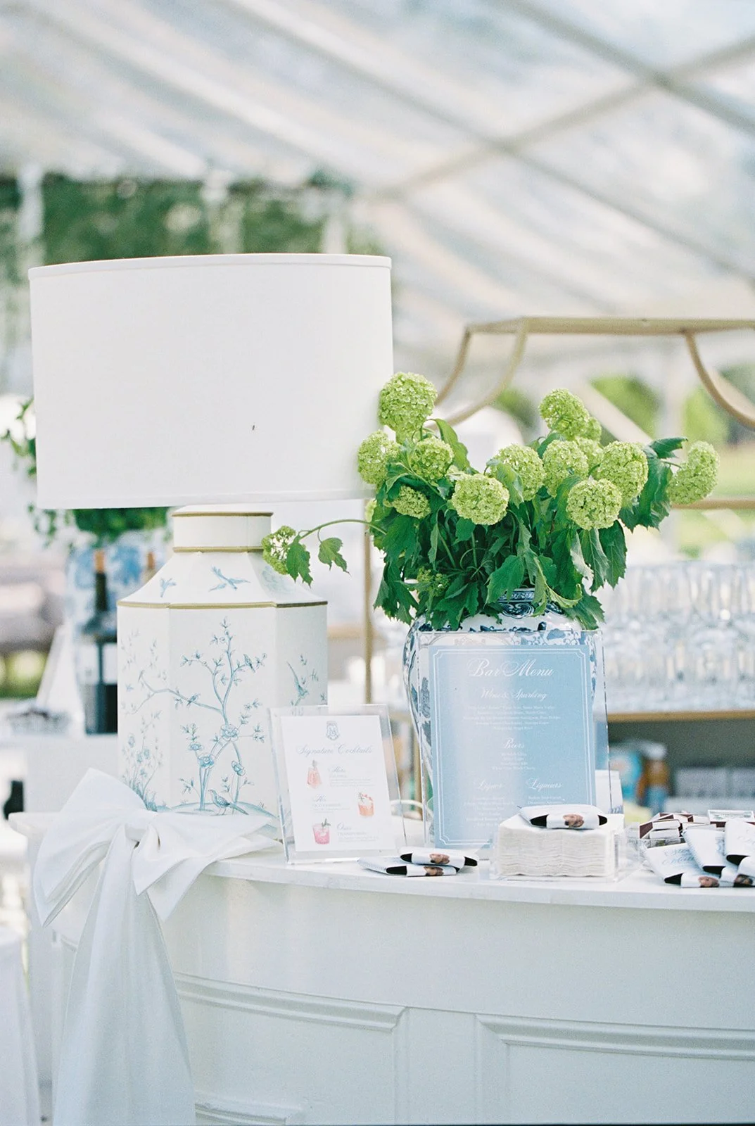 The Cumberland Lamp features a stunning blue and white chinoiserie design that exudes elegance and timelessness. Perfect for adding a touch of classic sophistication to any event, this gorgeous lamp effortlessly enhances both traditional and contemporary styles. Includes rechargeable light bulb and lamp shade.